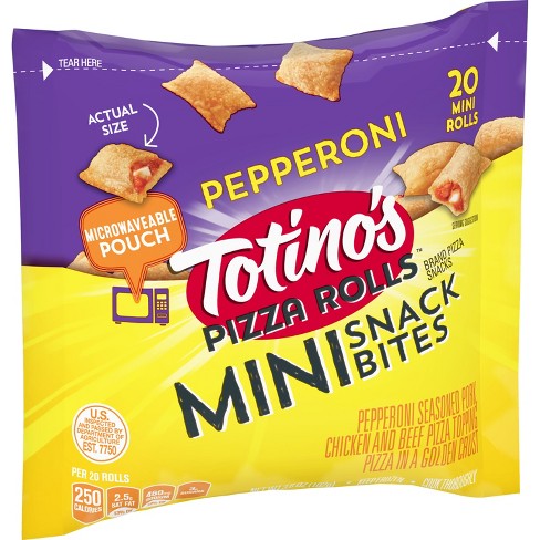 Totino's Pizza Rolls, Combination, Frozen Snacks, 24.8 oz ... Totino's Pizza Rolls can also be prepared in an air fryer in under 10 minutes. Whether you need an afternoon pick-me-up or have guests coming over, these frozen pizza rolls are a real crowd-pleaser. Golden, crispy bite-sized pockets are filled with all the flavor of a traditional sausage and pepperoni pizza.