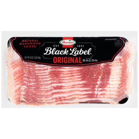 Why Grocery Store Shelves Are Empty | Page 4 ... HORMEL BLACK LABEL Bacon, Premium Applewood, 12 oz Pickup Hormel Natural Choice Original Uncured Bacon, 12 Oz. Add $5.98 ... current price $5.98 49.8 ¢/oz HORMEL BLACK LABEL Bacon, Center Cut, 25% Less Fat, 12 oz Pickup Great Value Original Bacon Hickory Smoked, 48 oz. Add $16.40 current price $16.40