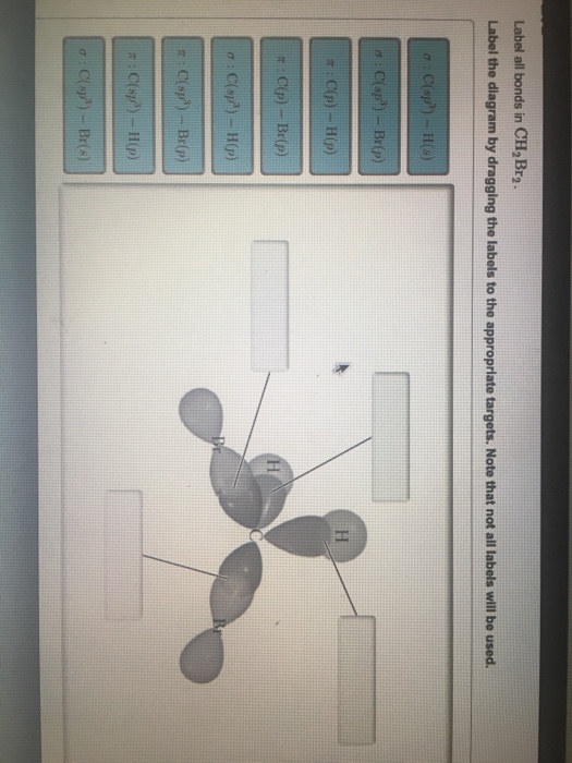 (Solved) : Label Bonds Ch2br2 Label Bonds So2 Label Bonds Nf3 Label ... Label all bonds in BF3. Label all bonds in CH2Br2 Label the diagram by dragging the labels to the appropriate targets. Note that not all labels will be used. o C(sp) H(s) o C(sp') Br(s) C(p) H(p) C(p) Br(p) C(sp) H(p) o C(sps) Br (p) C(sps) Br (p) reset help Show transcribed image text Expert Answer