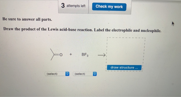 Draw the product of the Lewis acid-base reaction. Label the ... - OneClass State the product or products and write a detailed mechanism for the following reaction. In addition, label the Lewis acid, Lewis base, nucleophile and electrophile Weekly leaderboard