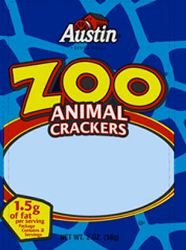 Zoo Animal Crackers - Austin - 2 OZ (56g) Ingredients list: Enriched flour ( wheat flour, niacin, reduced iron, vitamin b1 [thiamin mononitrate], vitamin b2 [riboflavin], folic acid), sugar, high fructose corn syrup, soybean oil, contains 2% or less of soy lecithin, leavening (baking soda, sodium acid pyrophosphate, monocalcium phosphate), salt, natural flavors.