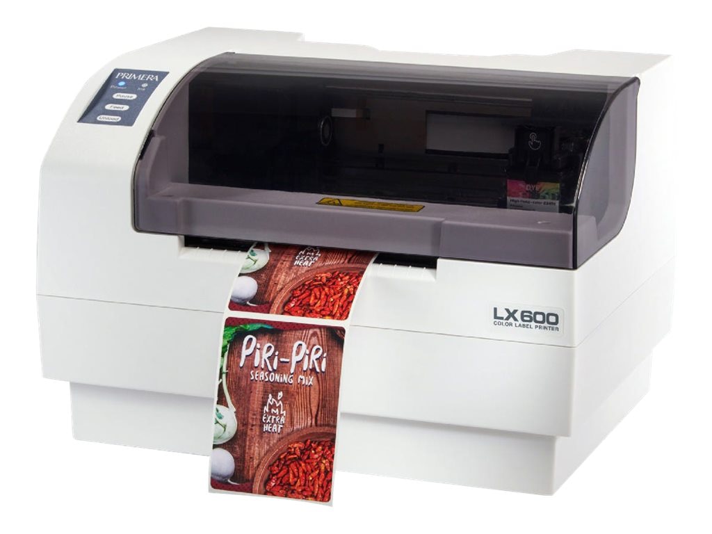 Food Label Printer: Primera LX900 Full Color Label Printer The Primera LX900 full color label printer is for printing quick, short and economical runs of labels up to eight inches wide. Use this printer when you desire vibrant color and extremely high image quality to distinguish your products. The LX900 is perfect for labeling food products, especially high-end, limited production items or new food lines subject to design change.