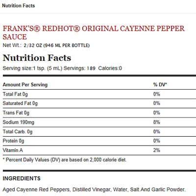 Franks red hot nutrition label