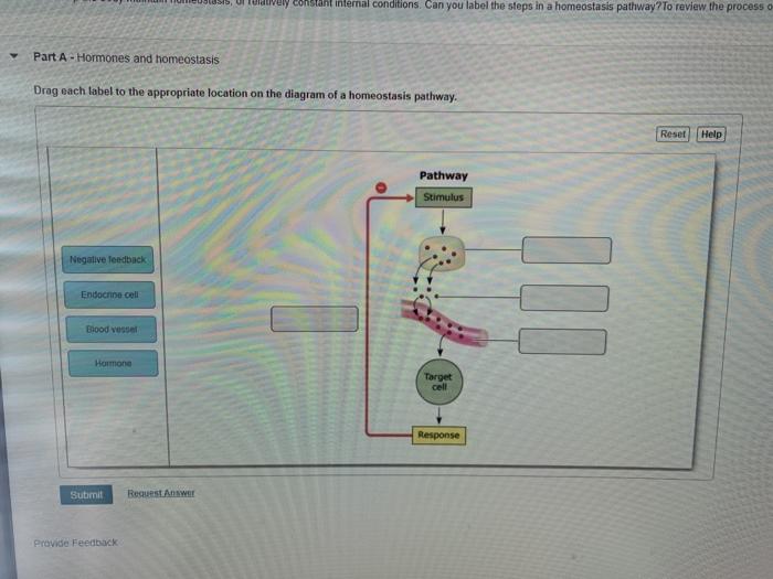 What Is Homeostasis? - Meaning, Definition And Examples - BYJUS Furthermore, homeostasis is a self-regulating process that regulates internal variables necessary to sustain life. In other words, homeostasis is a mechanism that maintains a stable internal environment despite the changes present in the external environment. The body maintains homeostasis by controlling a host of variables ranging from body ... Human Anatomy- Ch. 19 Mastering HW Flashcards | Quizlet Drag each label to the appropriate location on the diagram of a homeostasis pathway. a. Negative feedback b. endocrine cell c. hormone d. blood vessel In what ways do hormones alter their target cells? Hormones alter the types of cellular enzymes used. Compared to the nervous system, the endocrine system __________. Assignment 1.pdf - 9/20/2020 Assignment 1 Assignment 1 Due:... Drag the appropriate labels to their respective targets. Hint 1.Overview of the second messenger system Most amino-acid based hormones work through a second messenger system. First, a hormone binds to a receptor in the plasma membrane. The receptor then binds to a Gprotein and activates it using GTP. Answered: Part A Drag the appropriate labels to… | bartleby Science Anatomy and Physiology Q&A Library Part A Drag the appropriate labels to their respective targets. Reset Help Response Afferent Efferent- pathway pathway Receptor Effector Receptor Balance IMBALANCE Control Center Output Stimulus IMBALANCE Input