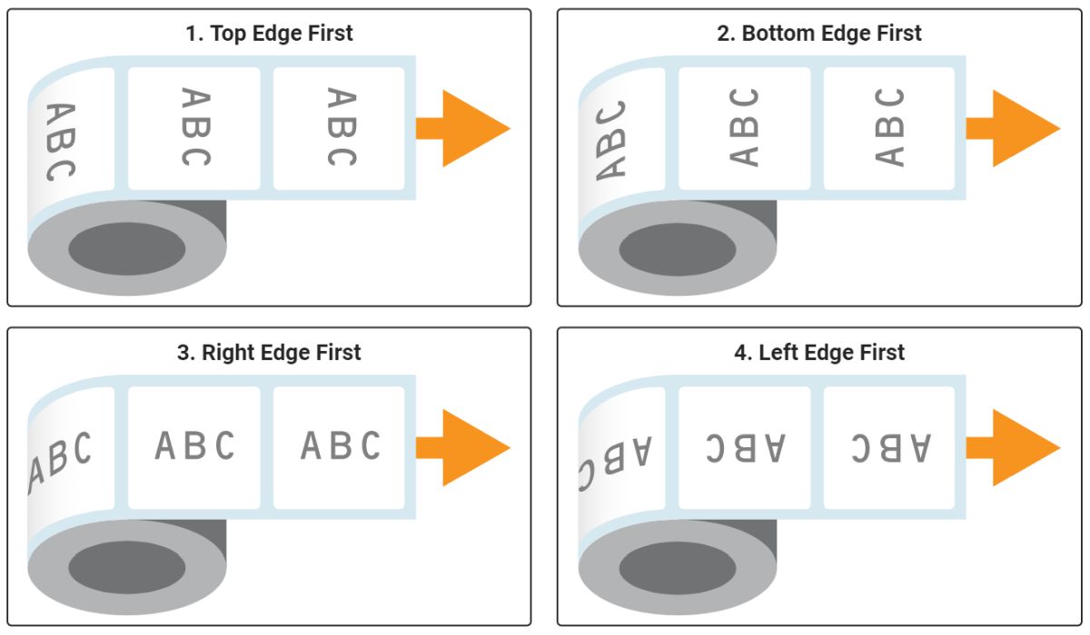 Label Unwind Direction | Roll Direction | Wizard Labels Unwind Direction refers to the orientation of the labels as they come off the roll. The label printing industry has developed standard descriptions for the various label unwind directions to avoid any confusion. For example, Unwind Direction #1 (Top Off First) indicates that the top of the label will be the leading edge when the roll is unwound.