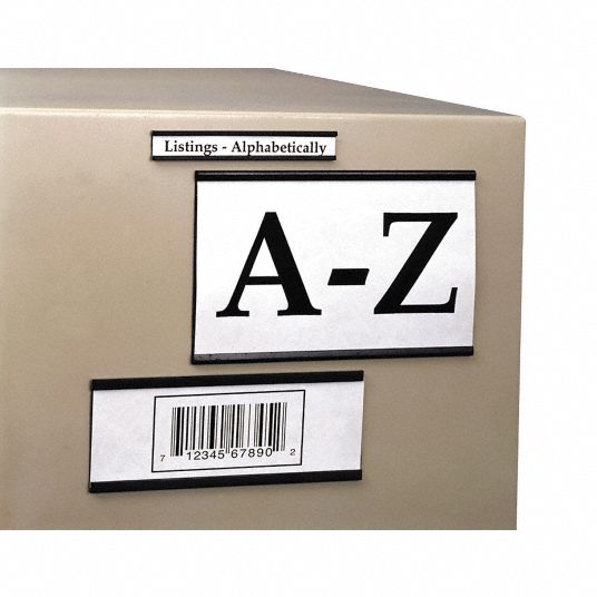 Label Holder: C-Channel Label Holder, 1/2 in Wd, 6 in Lg ... - Grainger Aigner® magnetic label holder makes labeling simple with a "C" channel cardholder and included white inserts. Heavy-duty (.060" thick) magnetic material ensures total adhesion in any application. Works great in any office, library, or warehouse metal shelf or rack. Compare this product Technical Specs Item Label Holder Color Black Finish Smooth