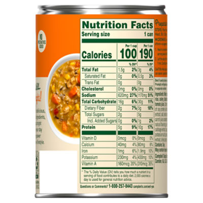 Campbell's soup nutrition label. Campbell's Yes Soup Nutrition - SoupNation.net How Much Does Instacart Delivery Or Pickup Cost. Delivery fees start at $3.99 for same-day orders over $35. Fees vary for one-hour deliveries, club store deliveries, and deliveries under $35. Service fees vary and are subject to change based on factors like location and the number and types of items in your cart. Chicken Noodle Soup - Campbell Soup Company With never-ending big flavors and bold ingredients, this comfort food classic is capable of fueling even the heartiest appetite. This ready-to-eat chicken soup is crafted with big pieces of chicken meat with no antibiotics, chunks of carrots and celery, and enriched egg noodles. Each can has 19 grams of protein. It Fills You Up Right®. Vegetable Soup - Campbells Food Service Campbell's® Condensed Healthy Request® Vegetable Soup is the comforting vegetable soup you love developed with your family's health in mind. Each heart healthy* can has 0 grams of trans fat and 50% less sodium** than our regular product. campbells soup Nutrition Information - Self campbells soup Nutrition Information 315 RESULTS: campbells soup Vegetables and Vegetable Products (13) Legumes and Legume Products (5) Soups, Sauces, and Gravies (254) Spices and Herbs (1) ... CAMPBELL Soup Company, CAMPBELL'S CHUNKY Microwavable Bowls, Grilled Chicken with Vegetables and Pasta Soup, ready-to-serve.