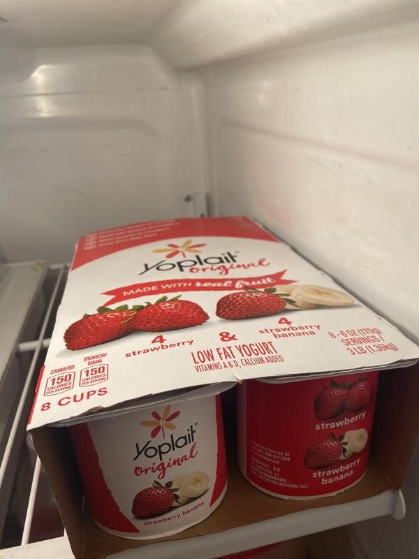 Yogurt by Yoplait USA nutrition facts and analysis. Yogurt by Yoplait USA contains 0 g of saturated fat and 4.5 mg of cholesterol per serving. 113 g of Yogurt by Yoplait USA contains 99.44 mg of calcium, 170 mg of potassium. Yogurt by Yoplait USA belong to 'Yogurt' food category. The UPC for this product is 070470461144. Does Yoplait Yogurt Have Probiotics In It - ProbioticsTalk.com According to Yoplaits website, a 6-ounce serving of its original strawberry banana yogurt contains 170 calories, 1.5 grams of fat, 33 grams of carbohydrates, and 5 grams of protein. Sugar, strawberries, cornstarch, and banana puree are the main ingredients, in addition to low-fat milk.
