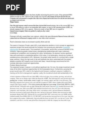 Hansson Private Label Case Solution - CaseProfessors Hansson Private Label Case Solution This solution includes: A Word File and An Excel File Hansson Private Label (HPL) is a manufacturer of personal care products. The company was purchased by Mr. Hanson in 1992. The investment represented a significant risk for Hanson because a significant portion of his wealth was tied up is a single investment. Hansson Private Label, Inc.: Evaluating An Expansion - Case Solution If you were Tucker Hansson, would you go ahead and expand the current capacity, and base your answer on the context of the wider economic environment: apart from NPV and BCR calculations, also use exhibits 2 and 3 to substantiate your argument. You'll be redirected to the full case solution. Hansson Private Label Case Study Solution and Case Analysis Hansson Private Label (HPL) is a manufacturer of personal care products such as shampoo, soap, mouthwash, sunscreen and shaving cream. The company started in 1992 when it purchased assets from Simon Health and Beauty Products. The company was purchased by Mr Hanson for $42 million - $17 million of which was raised through debt financing.