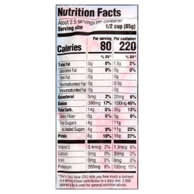 Imitation crab nutrition label. Air Fryer Crab Rangoon - Allrecipes You can use imitation crab instead of lump crab meat. The dumplings can be made ahead and frozen for later use. Place uncooked dumplings on a baking sheet, making sure they are not touching. Freeze for 2 hours or until solid. Transfer dumplings to a freezer-safe container. Dumplings can be cooked frozen in the air fryer but you will need to add 3 minutes to the cook … › food › seafoodThe Real Story Behind Imitation Crab - Southern Living Jul 22, 2022 · But nutritionally, these are two very different products. Real crab meat has almost three times the protein of imitation crab. (A three-ounce serving of crab has 16 grams of protein versus only 6 grams in imitation examples). Additionally, artificial crab has more sodium and sugar. › recipe › 283528Imitation Crab Casserole with Cheese - Allrecipes Add crab, condensed soup, water, parsley, seafood seasoning, salt, garlic powder, and pepper; mix to combine. Heat until almost bubbling, about 5 minutes. Remove from the heat and blend in Cheddar cheese until melted. draxe.com › nutrition › imitation-crab-meatImitation Crab Meat May Be Even Worse Than You Think Sep 03, 2019 · Compared to real crab, imitation crab is significantly lower in many nutrients, including protein, vitamin B12 and selenium. Crab also provides a much wider range of nutrition than imitation crab meat. For comparison, a three-ounce serving of cooked queen crab contains approximately: 98 calories; 20.2 grams protein; 1.3 grams fat