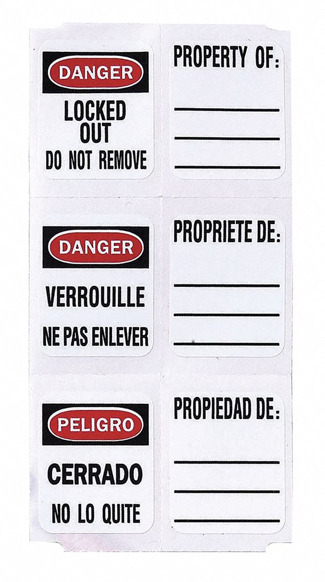 This 1.625" x 1.25" OSHA Danger Locked Out Padlock Label Set has writing space on the back label to mention owner of property or equipment being ...