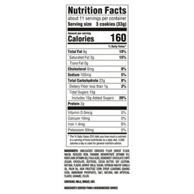 Calories in Famous Amos Chocolate Chip Cookies - SparkPeople Calories: 150, Fat: 7g, Carbs: 20g, Protein: 2g Show full nutrition information Famous Amos Chocolate Chip Cookies (1 serving) Calories: 150, Fat: 7g, Carbs: 20g, Protein: 2g Show full nutrition information Famous Amos Chocolate Chip Cookies (2 Oz Bag - 1 Oz (4 Cookies) Per Serving) (1 serving) Calories: 150, Fat: 7g, Carbs: 20g, Protein: 2g Famous Amos Malaysia | Freshly baked cookies online store The Original Famous Amos® freshly baked cookie. Available in a variety of sizes and packed for your convenience, in either gift boxes or on-the-go packs. FIND A STORE. LOG IN / SIGN UP; ... Cookies Canister 120g. RM29.90. View Product. La Rosa Tin 320g. RM56.90. View Product. Vintage Car 120g. RM37.90. View Product. Floral Octagon Tin 450g ... Philippine Coconut & Chocolate Chip Cookies | Famous Amos Ingredients ENRICHED FLOUR (WHEAT 7ZJ FLOUR, NIACIN, REDUCED IRON, VITAMIN B1 [THIAMIN MONONITRATE]. VITAMIN B2 [RIBOFLAVIN], FOLIC ACID), WHITE CHOCOLATE (SUGAR, COCOA BUTTER, MILK, WHEY, SOY LECITHIN, NATURAL FLAVORS), SUGAR, PALM OIL, COCONUT, EGGS, WITH 2% OR LESS OF COCOA, PROCESSED WITH ALKALI, BAKING SODA, SALT, NATURAL FLAVORS. Famous Amos Cookies Chocolate Chip, Bite Size Allergy and Ingredient ... Nutrition Label Nutrition Facts Serving Size 4.00 cookies Servings Per Container 58.00 Amount Per Serving Calories 140 Calories from Fat 60 % Daily Value* Total Fat 7g 10.76% Saturated Fat 2g 10% Trans Fat 2g Cholesterol 0.003g 1% Sodium 0.105g 4.37% Total Carbohydrates 19g 6.33% Dietary Fiber 1g 4% Sugars 9g Protein 1g Vitamin A 0% Vitamin C 0%
