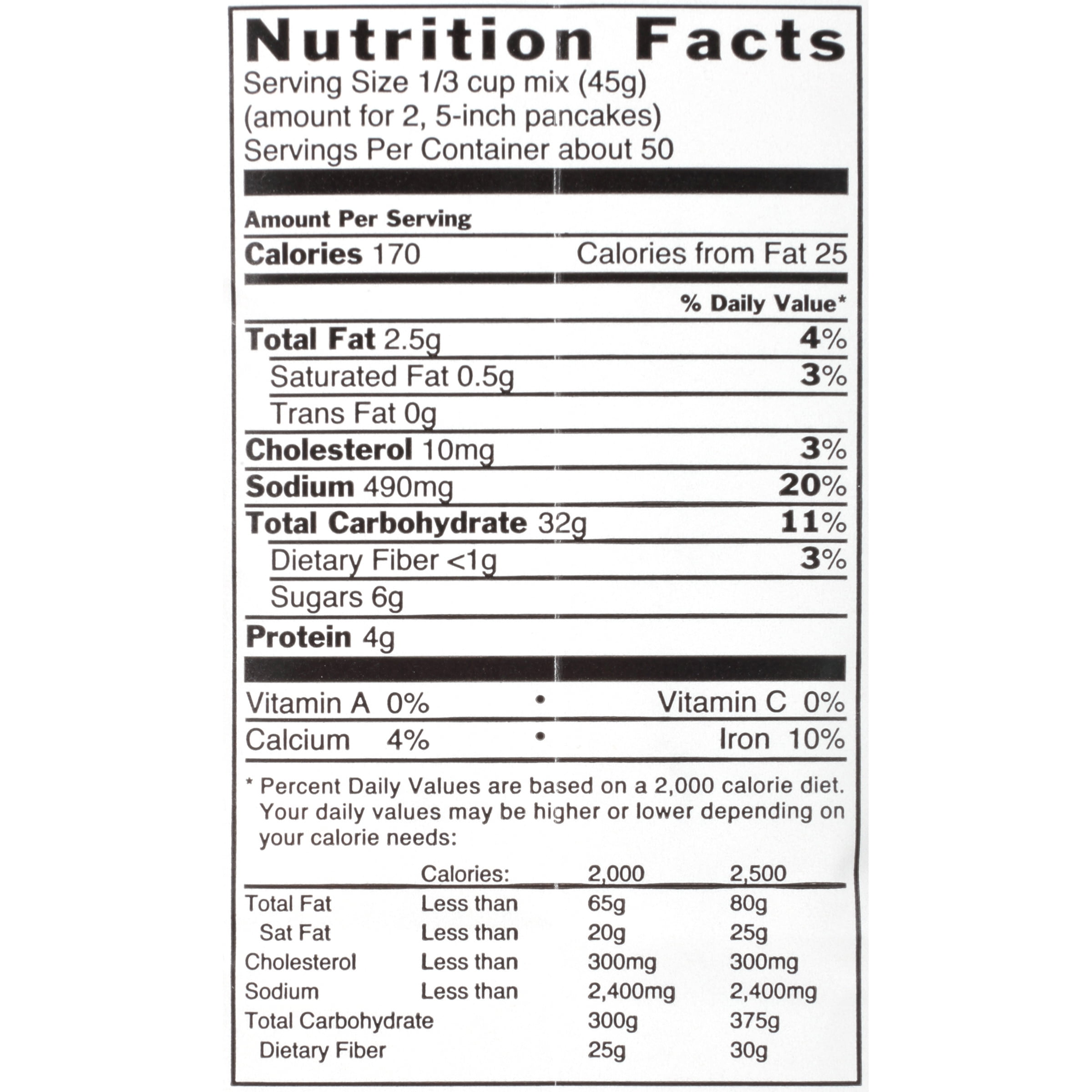 Pancake mix nutrition label. PANCAKE MIX NUTRITION LABEL RECIPES All You Need is Food Mix dry ingredients in a large mixing bowl. If you are making gluten free pancake mix to save for later, then transfer the mix to an airtight container. Add the wet ingredients to your mixing bowl and stir just until combined. Ladle 1/4 cup of pancake batter onto your hot griddle, or pan. Cook for 2-3 minutes, or until bubbles form around the ... Aunt Jemima (Pearl Milling Company) Pancake Mix: Calories, Fat, Protein ... The dry mix alone contains 120 calories, none of which come from fat. When you prepare the mix as directed, the pancakes contain 250 calories per serving. Of the 250 total calories, 70 calories come directly from fat. The mix contains 0.5 grams of fat and doesn't contain any saturated or trans fat. BREAKING DOWN NUTRITION LABELS - Kodiak Cakes Next, we can look at calories. This mix has about 400 calories per serving prepared, making it a great snack or small meal choice. A full meal is generally about 500+ calories, which means I might need to eat something else in addition to a serving of muffins to help keep me full. Pancake Mix Nutrition Label - This Nutrition Support ThisNutrition The average length of a premium article is around 5,000 words. It takes our writers an average of three days to write and publish an article.