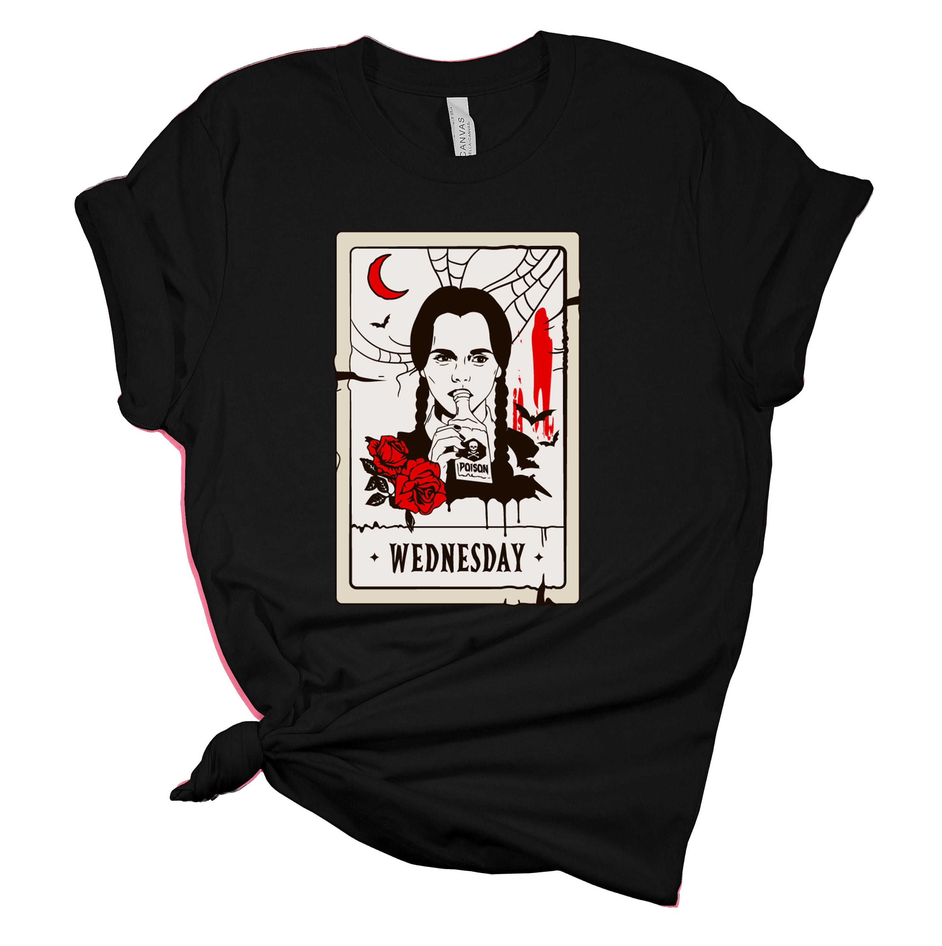 Wednesday Poison Bottle - Tee Cheap US Take a look at the detailed information about the Wednesday Poison Bottle. Material 100% Cotton Color Various Colors Size From S to 5XL Color Black, White, Cardinal Red, Forest Green, Gold, Navy, Royal, Sport Grey… Style option Unisex Cotton Tee, Unisex Long Sleeve, Hoodie, Sweat Shirt, Guys V-Neck, Ladies V-Neck, Tank, Long Sleeve.