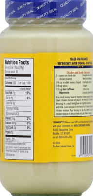 Mayonnaise nutrition facts label. Two-Minute Mayonnaise Recipe - Serious Eats Sep 16, 2022 · Add garlic, if using. Pour oil on top and allow to settle for 15 seconds. Place head of immersion blender at bottom of cup and turn it on high speed. Do not pulse or move the head. As mayonnaise forms, slowly tilt and lift the head of the immersion blender until all oil is emulsified. Season mayonnaise to taste with salt. Grilled Cheese With Mayo - Allrecipes Oct 11, 2022 · Spread 1/2 the mayonnaise onto one side of a slice of bread and place, mayonnaise-side down, in a skillet. Place American cheese and pepperjack cheese on top of the bread. Spread remaining mayonnaise onto one side of the remaining bread and place, mayonnaise-side up, on top of the cheese. Food and Recipes Center: Easy, Healthy Recipe Ideas for Your ... Learn the definitions of basic nutrition terms. USDA's MyPlate . The USDA has simplified nutrition guidelines with its "MyPlate" campaign. MyPlate replaces the older Food Pyramid that many adults ... Egg Nutrition Facts • MyFoodDiary® Nutrition information for Egg. ... Heinz Real Mayonnaise. 1 tbsp (14g) Nutrition Facts ... President's Choice Eggplant Parmigiana Tondo Filled Egg Pasta Black Label ...