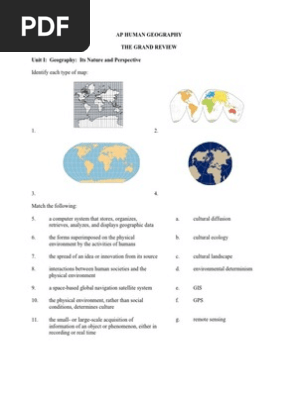 AP HUMAN GEOGRAPHY GRAND REVIEW ANSWERS Flashcards | Quizlet a space-based global navigation satellite system GPS the physical environment, rather than social conditions, determines culture environmental determinism the small- or large-scale acquisition of information of an object or phenomenon, either in recording or real time remote sensing Choose the one that does not belong: a. township and range