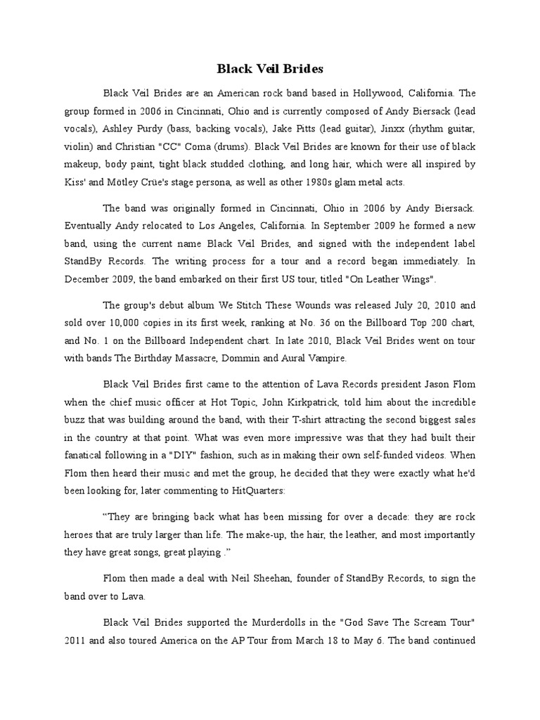 Black Veil Brides - Sumerian Merch Black Veil Brides - Sumerian Merch. Committed to uncompromising expression, with a foundation in hard rock tradition and rule-breaking iconoclasm, Black Veil Brides is a transcendent celebration of life-affirming power and anthemic catharsis. A gothic vision first summoned in a small town by an isolated kid fascinated with death, rock ... Black veil brides - Blog In September 2009, using the current name, Black Veil Brides signed with the independent label StandBy Records. [2] The writing process for a tour and a record began immediately. In December 2009, the band embarked on their first US tour, titled "On Leather Wings". [3]