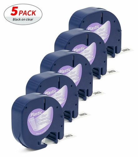 DYMO LetraTag Plastic Labels | Dymo Select a SIZE. .5"- 12mm. DYMO LetraTag labels are tough and tear-resistant. These plastic DYMO labels print black text on clear labels. Created specifically for your LetraTag label maker, they provide an economical solution for labeling almost anything, anywhere in your home. With this order, you'll receive one roll that spans 13 feet.