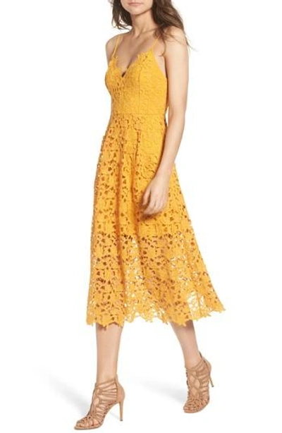 Floral-Lace Midi Dress - ASTR The Label | New York & Company Designed in allover lace cut into a floral motif, this midi dress is effortlessly elegant. This style was designed by & has an ASTR The Label label. Taking inspiration from the latest trends and affinity for all things feminine, the creative collective behind ASTR The Label aims to immerse our customers into a world of effortless beauty.
