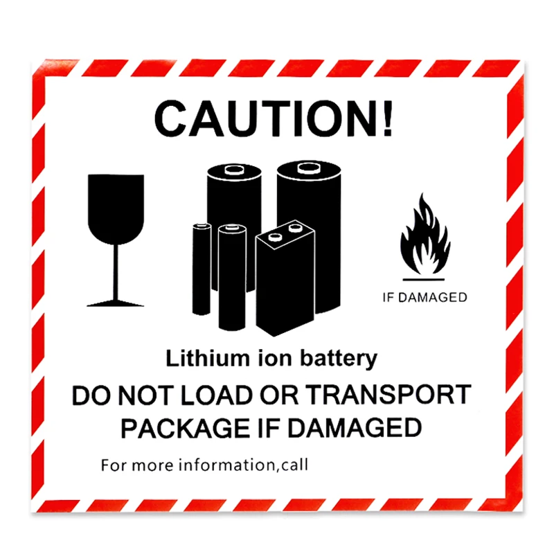 Caution Lithium Ion Battery Adhesive Stickers,Shipping Warning Label ... 1.Lithium Ion Battery Caution stickers. 2.High clear front "Caution Lithium Ion Battery Do Not Load Or Transport Package If Damaged" text. 3.Stickers measuring 3"x 2",always suitable for small size shipping boxes. 4.Easily sticks to surfaces,just peel and appy.