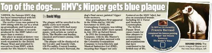 Gigantic HMV Nipper the dog statue to be unveiled at opening of latest ... The famous dog, which has been used on the logo for HMV and was immortalised in the painting His Master's Voice, was used by various record companies across the world. The unveiling of the 5.5m statue coincides with a carnival being held to celebrate the opening of The Record Store at The Old Vinyl Factory on Friday (September 29).