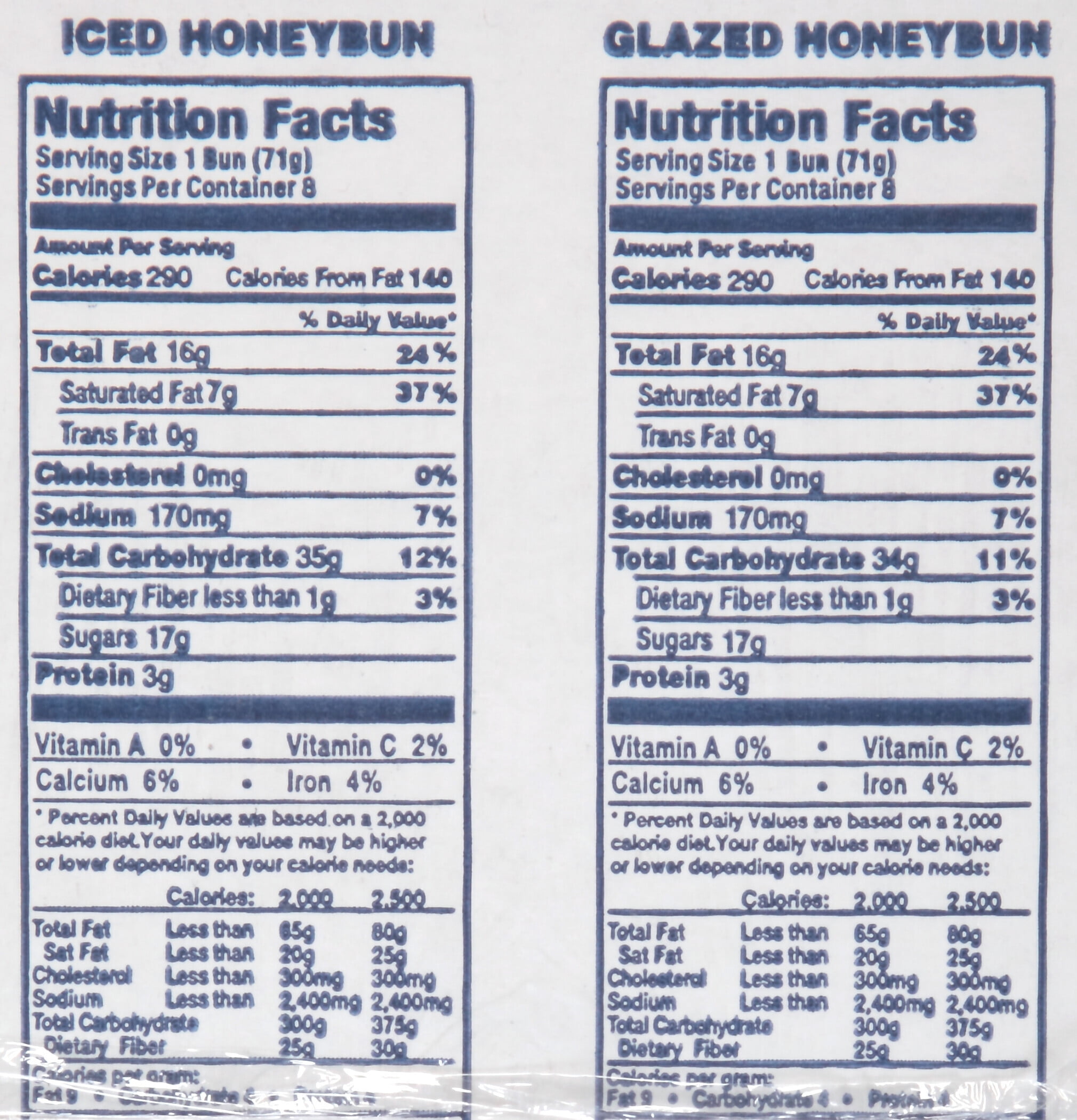 Honey Bun Nutrition Label - This Nutrition 1 . Hormone Type 6 Diet Plan 2 . Garlic: Useful Properties 3 . Hormone Type 5 Diet Plan 4 . E528 - Magnesium Hydroxide 5 . Hormone Type 1 Diet Plan 6 . Best Statin With Least Side Effects 7 . Chicken Protein Per 100g 8 . 3 Types Of Carbohydrates And Examples 9 . Pomegranate - Has A Strong Antibacterial And Antiviral Effec... 10 . Little Debbie Honey Buns, Big Pack Nutrition Facts & Calories - Inlivo Rich in vitamins and minerals (10%/cal) - a good source of Manganese, Copper, Vitamin E, Magnesium, Phosphorus, Potassium, Calcium and Vitamin B6. Contains a high amount of risky components that may include saturated fat, cholesterol, sodium and sugars (0.05%/oz). Relatively high in saturated fat (53% of DV/100g). Calories in 1 grams (3.5 oz) Nutrition Labels for Honey [NTNL] Roll of 250 - Blue Sky Bee Supply, LTD Nutrition Labels for Honey [NTNL] Roll of 250 (2 reviews) Write a Review Shipping: Calculated at Checkout Previous Next $16.95 Choose Your Label: Required No Bottle Size 6 oz. 8 oz. 12 oz. 1 lb. 1.5 lb. 2 lb. 3 lb. 5 lb. Quantity: Select all Add selected to cart Description 2 Reviews Labels measure 1.75" x 1.25". Wholegrain Honey Buns | INDIVIDUALLY WRAPPED BAKERY PRODUCTS - Muffin Town MUFFIN TOWN INC. 130 Crescent Avenue Chelsea, MA 02150 Phone: (617) 846-1565 Fax: (617) 539-3288 Email: inquiries@muffintown.com