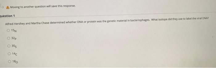 This question concerns the genetic code, In 1952 Alfred Hershey and Martha Chase conducted series of experiments to determine whether DNA or protein was the genetic material. They grew viruses in one ...