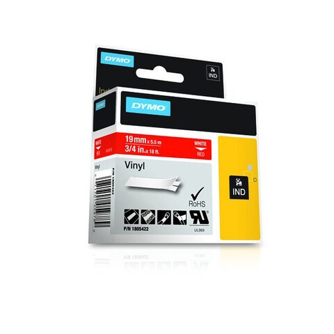 DYMO 18445 Rhino Permanent Vinyl Industrial Label Tape, 3/4-Inch x 18 ... DYMO 18445 Rhino Permanent Vinyl Industrial Label Tape, 3/4-Inch x 18 ft, White/Black Print Visit the DYMO Store 15 ratings About this item Sold as 1 Each. Industrial-strength, smear-proof label tape stays firmly in place. Thermal transfer printing prevents smudging and smears.