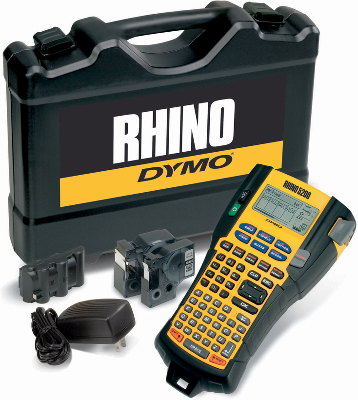 DYMO 1755749 Rhino Industrial 5200 Label Maker - ADI Global Brand: DYMO. ADI #:7D-1755749 Name: DYMO 1755749 Rhino Industrial 5200 Label Maker. Print Code 39 and Code 128 bar codes on 3/4" (19mm) wide labels. Exclusive, one-touch "Hot Keys" to automatically size, space, and format label text. Uses DYMO Industrial labels with chemical-heat-and UV-resistant materials. Rhino Tapes by Dymo | LabelValue 1/2" x 18' (12mm x 5m) white vinyl label tape 1 continuous roll, 1 roll per box Dymo Rhino vinyl labels are durable and weather resistant, designed to resist fading in direct sunlight and sticking to wires and cables for an extended amount of time list price $24.99 $19.99 Save $5.00 or 20% As low as $13.60 Free shipping in the USA View product