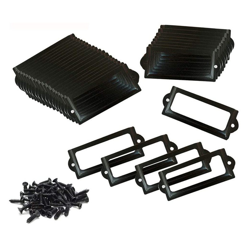 Adiyer 40pcs Black Metal Label Holders Office Library File Drawer Cabinet Card Tag Label Holder Metal Frame 60mm x 17mm