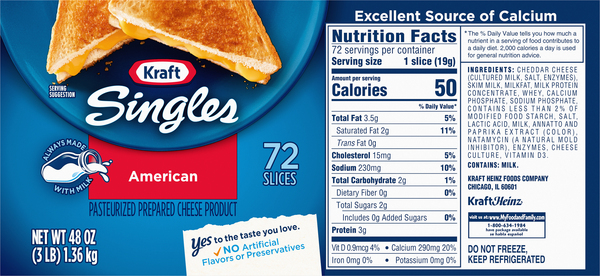 Kraft singles american cheese nutrition label