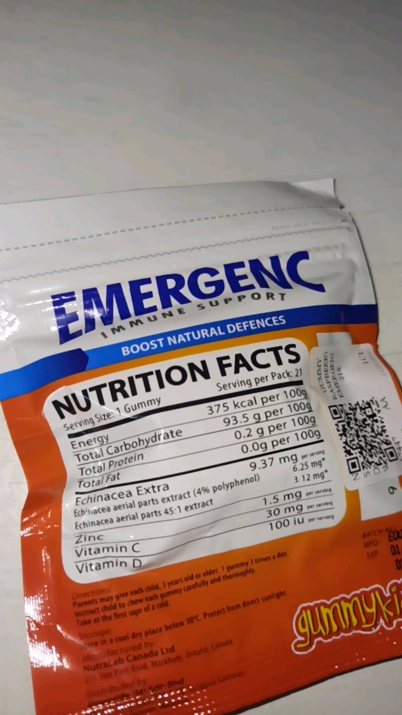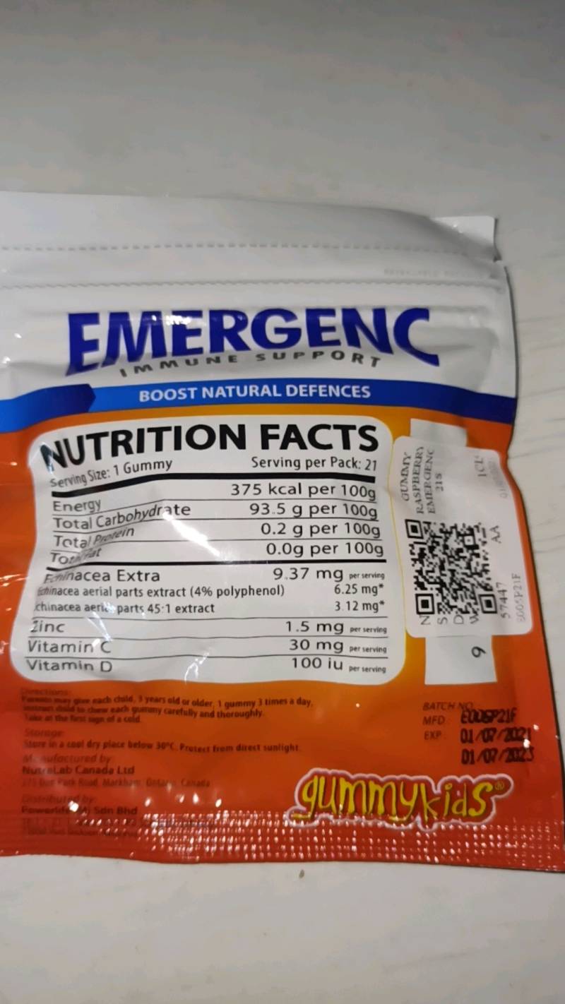 Emergen-C Canada *Emergen-C helps to maintain immune function. ** Emergen-C Energy+ helps to temporarily promote alertness and wakefulness, and to enhance cognitive performance. Emergen-C Energy+ helps temporarily to relieve fatigue, to promote endurance, and to enhance motor performance. ***Based on the Health Canada Nutrient Value of Common Foods, Orange.