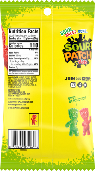 Sour Patch Stickers for Sale - Redbubble Buy any 10 and get 50% off. Favorite. Tags: sour, sour candy, sour patch kids, gummies, candy, sour then sweet. Sour Then Sweet Sticker. By VeraG2607. Dessert Sour Patch Kids Framboise Bleue - Carrefour Dessert Sour Patch Kids Framboise Bleue : le pack de 552 g à retrouver en drive ou livraison au même prix qu'en magasin dans le rayon Boissons végétales. Sour Patch Label - Etsy Results 1 - 40 of 132 ... Check out our sour patch label selection for the very best in unique or custom, handmade pieces from our shops. SOUR PATCH KIDS Original Soft & Chewy Candy SUGAR,INVERTSUGAR,CORN SYRUP,MODIFIED CORN STARCH,CONTAINS LESS THAN 2% OF TARTARIC ACID,CITRIC ACID,NATURAL AND ARTIFICIAL FLAVOR,YELLOW 6,RED 40,YELLOW 5,BLUE ...
